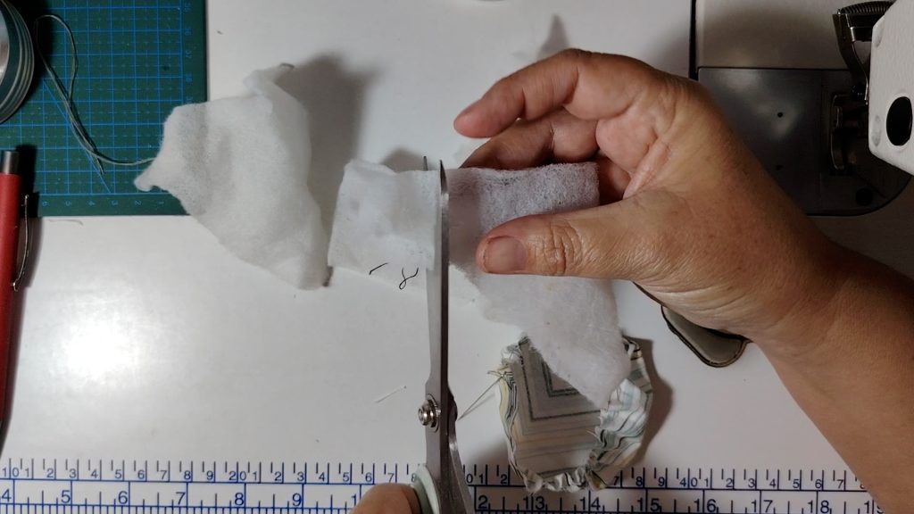 Take your batting or wadding and cut it into small pieces.