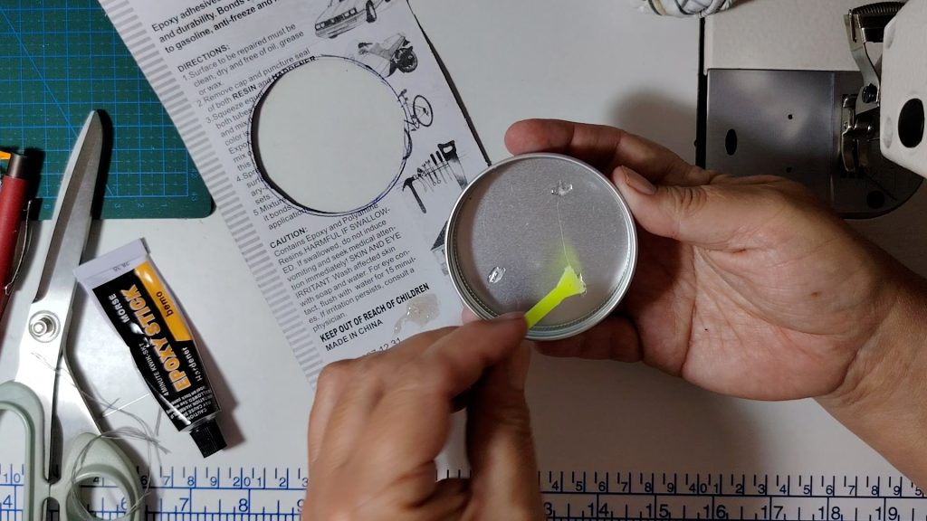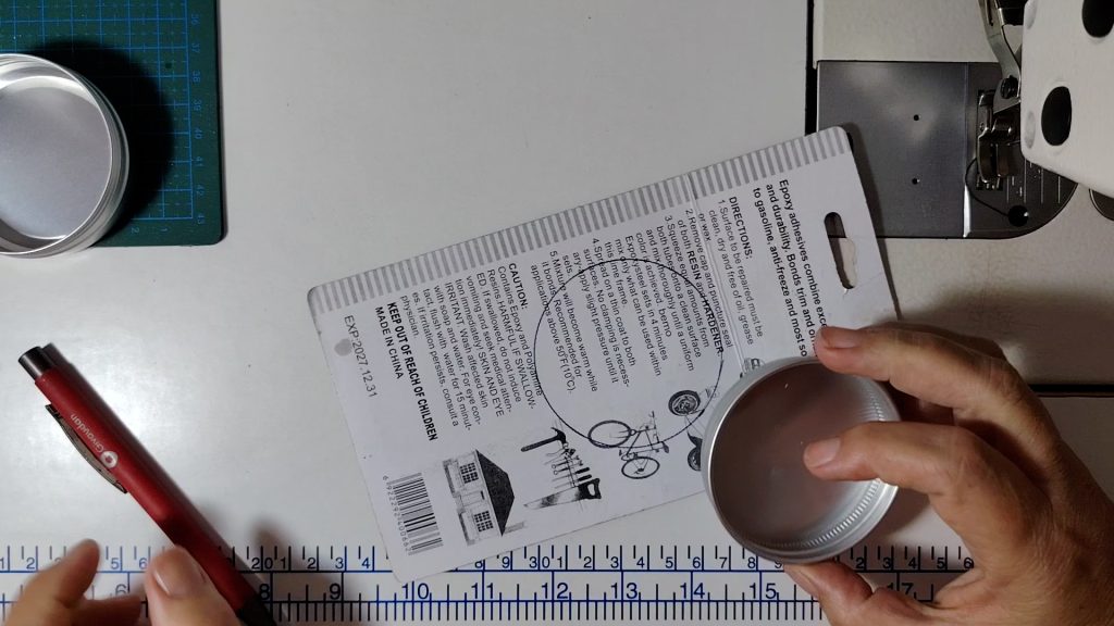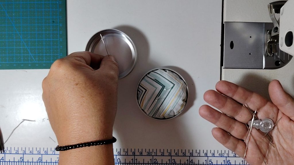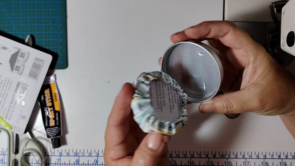 This creates a flat, firm base that will later be glued into the tin lid.