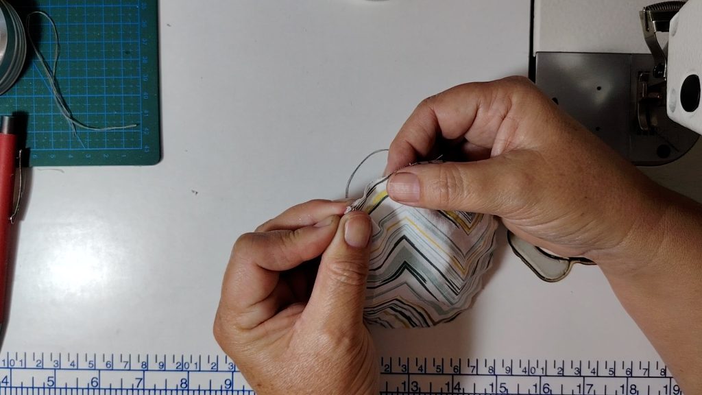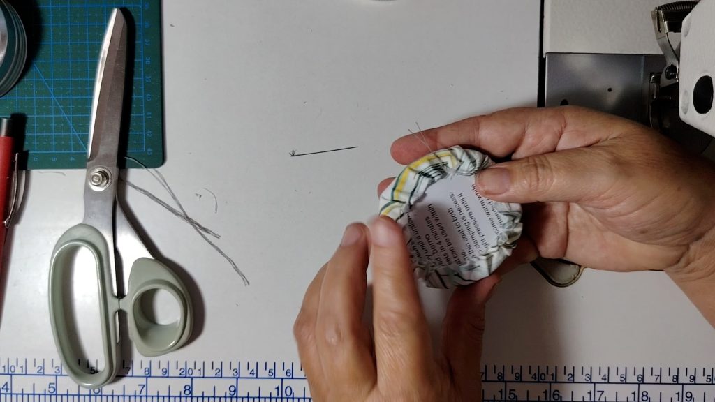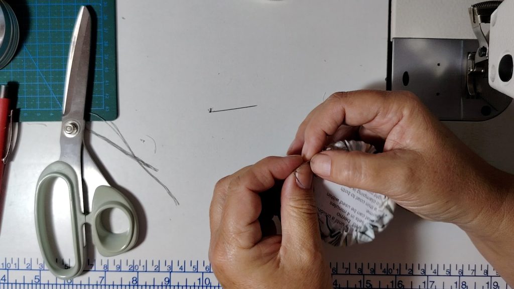 Once the stitching is complete, gently pull the thread so the fabric starts to gather.