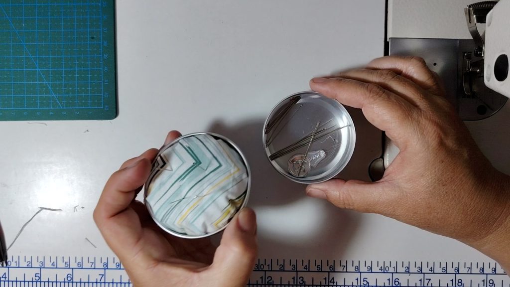 This makes the tin both a pincushion and a storage container.